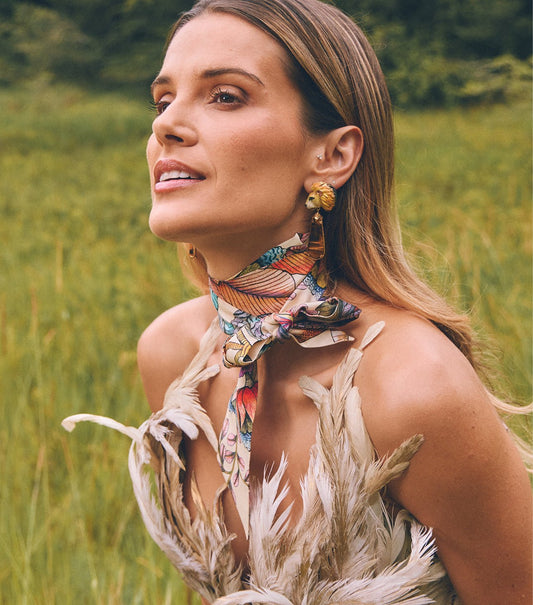 Hoopoe Hop Silk Twill in Stone 165