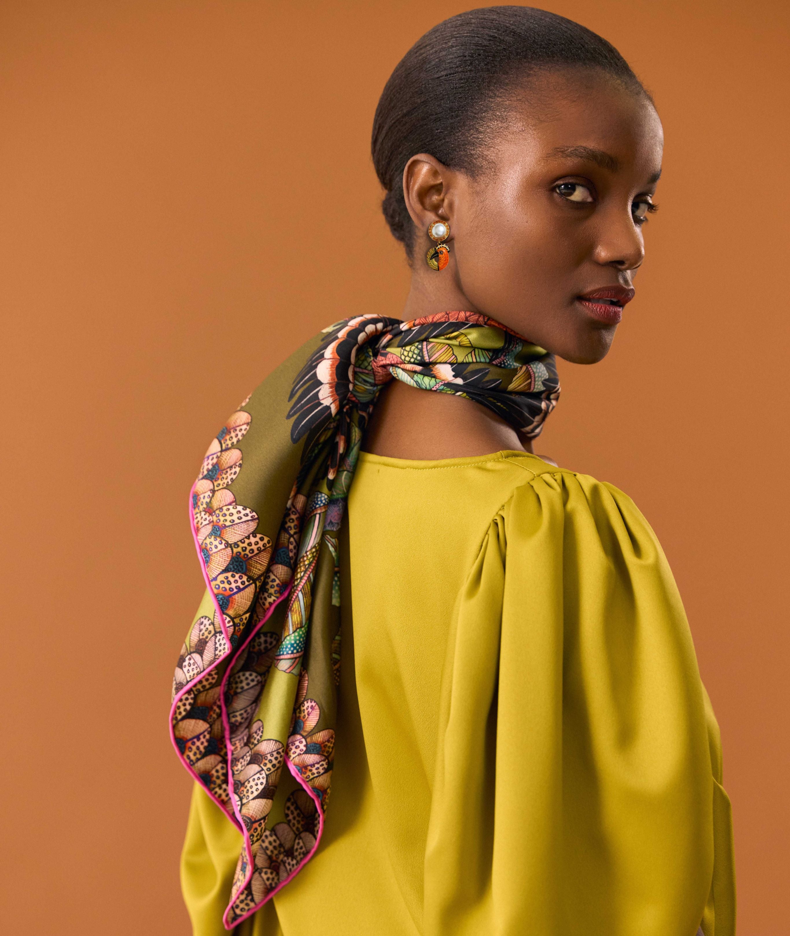Hoopoe Hop Silk Scarf Safari 90 (Double face)