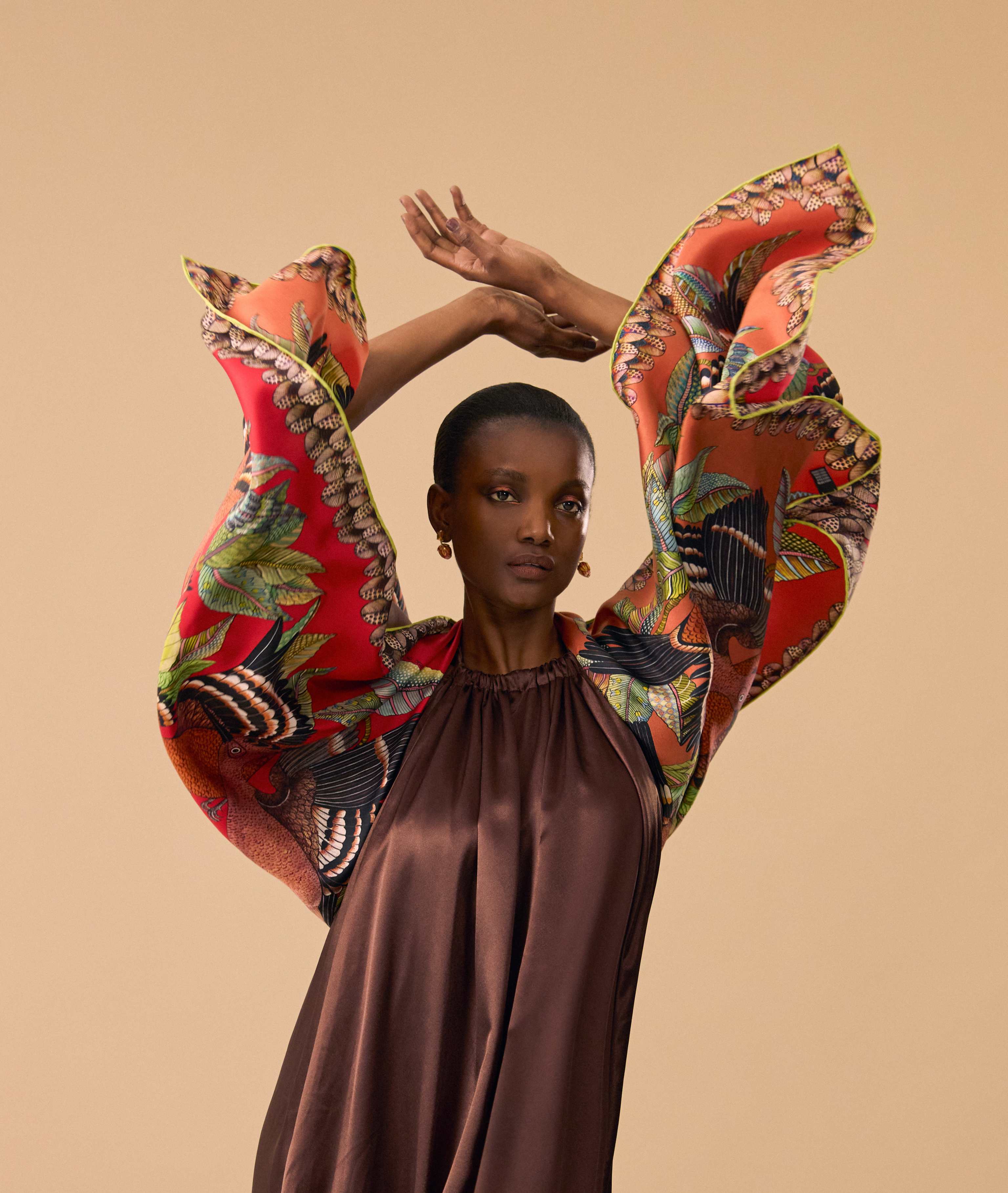 Hoopoe Hop Silk Scarf Rust 90 (Double face)