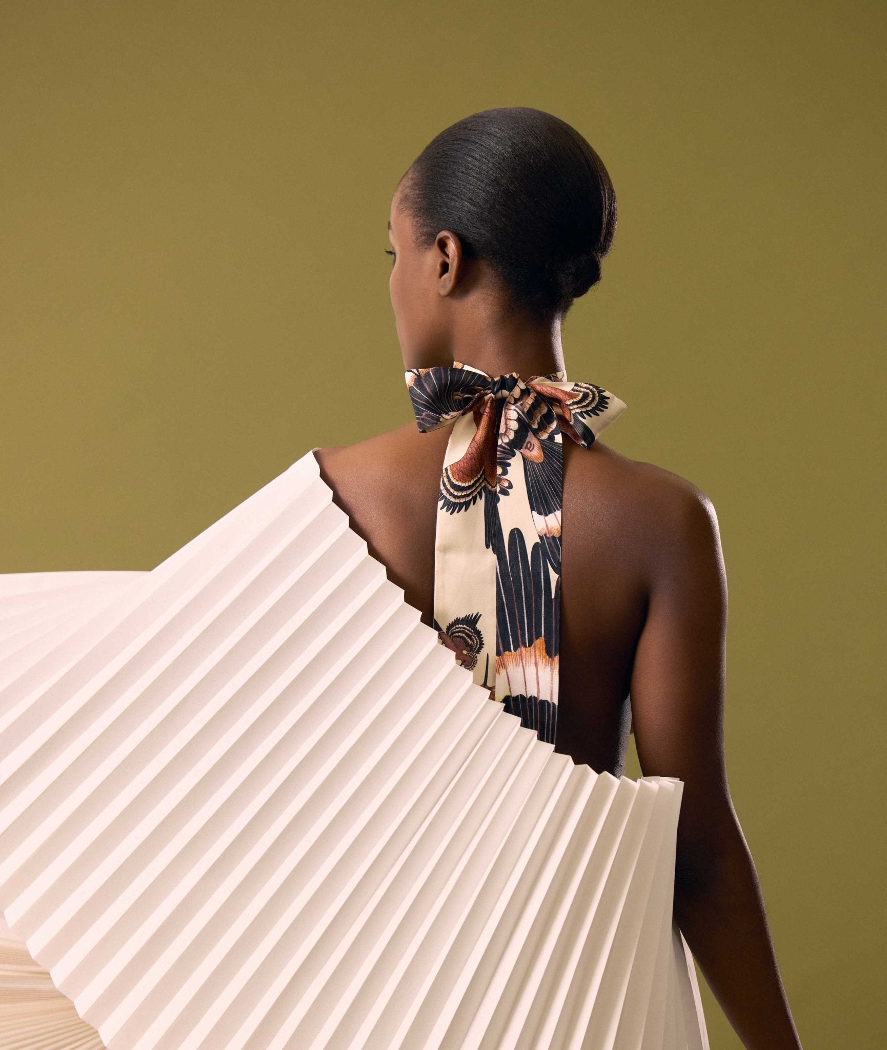 Hoopoe Hop Silk Scarf Chalk 90 (Double face)