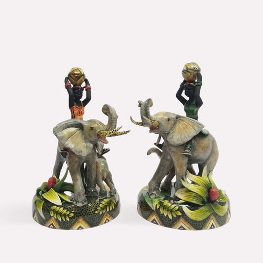 Elephant and Water Carriers Candle Holders