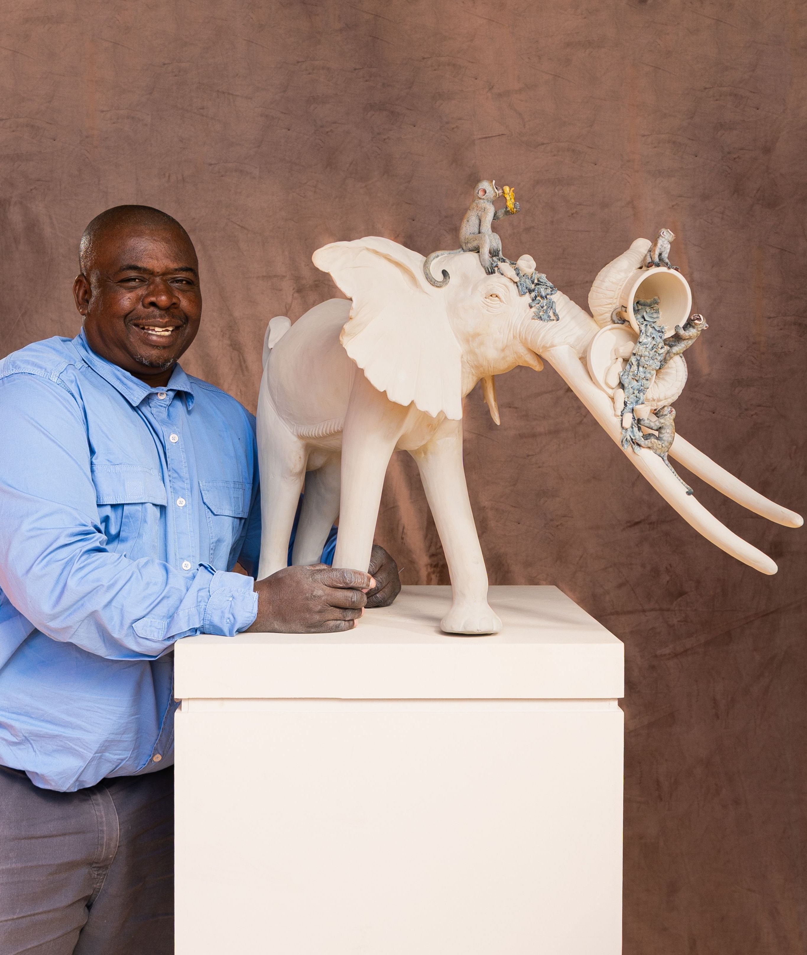 Tusker and Monkeys Sculpture