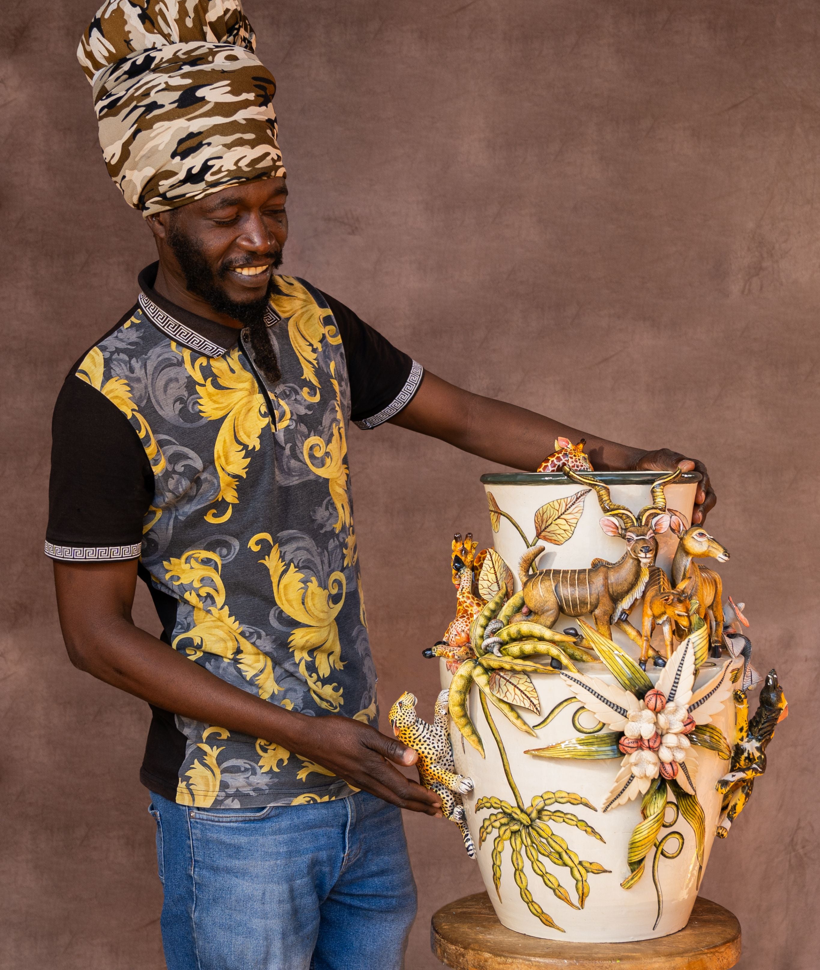 Giraffe and Leopard Vessel