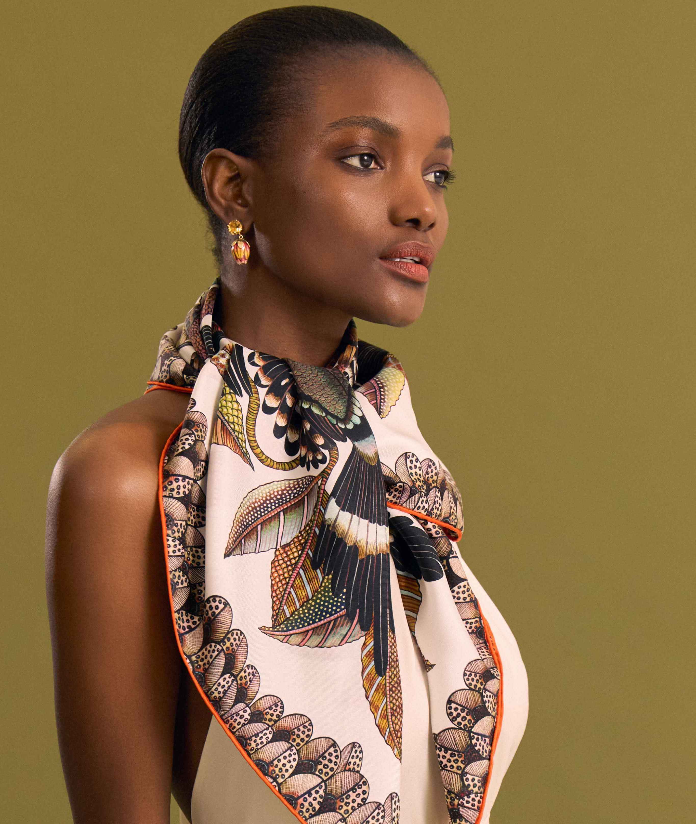 Each printed silk scarf in our collection is inspired by Africa’s untamed beauty, from leopards and elephants to florals and folkloric patterns. Meticulously designed and expertly finished, these luxury silk scarves elevate any outfit with a touch of wild elegance.