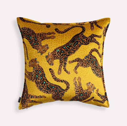 Cheetah Kings Gold Velvet Cushion Cover
