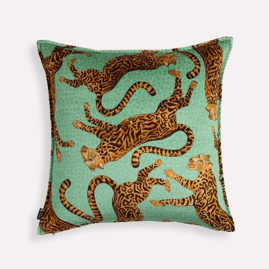 Cheetah Kings Jade Velvet Cushion Cover