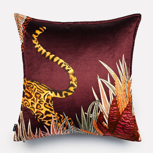 Cheetah Kings Forest Plum Velvet Cushion Cover