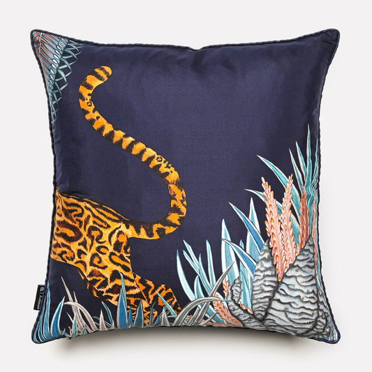 Cheetah Kings Forest Tanzanite Silk Cushion Cover