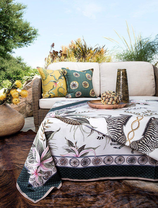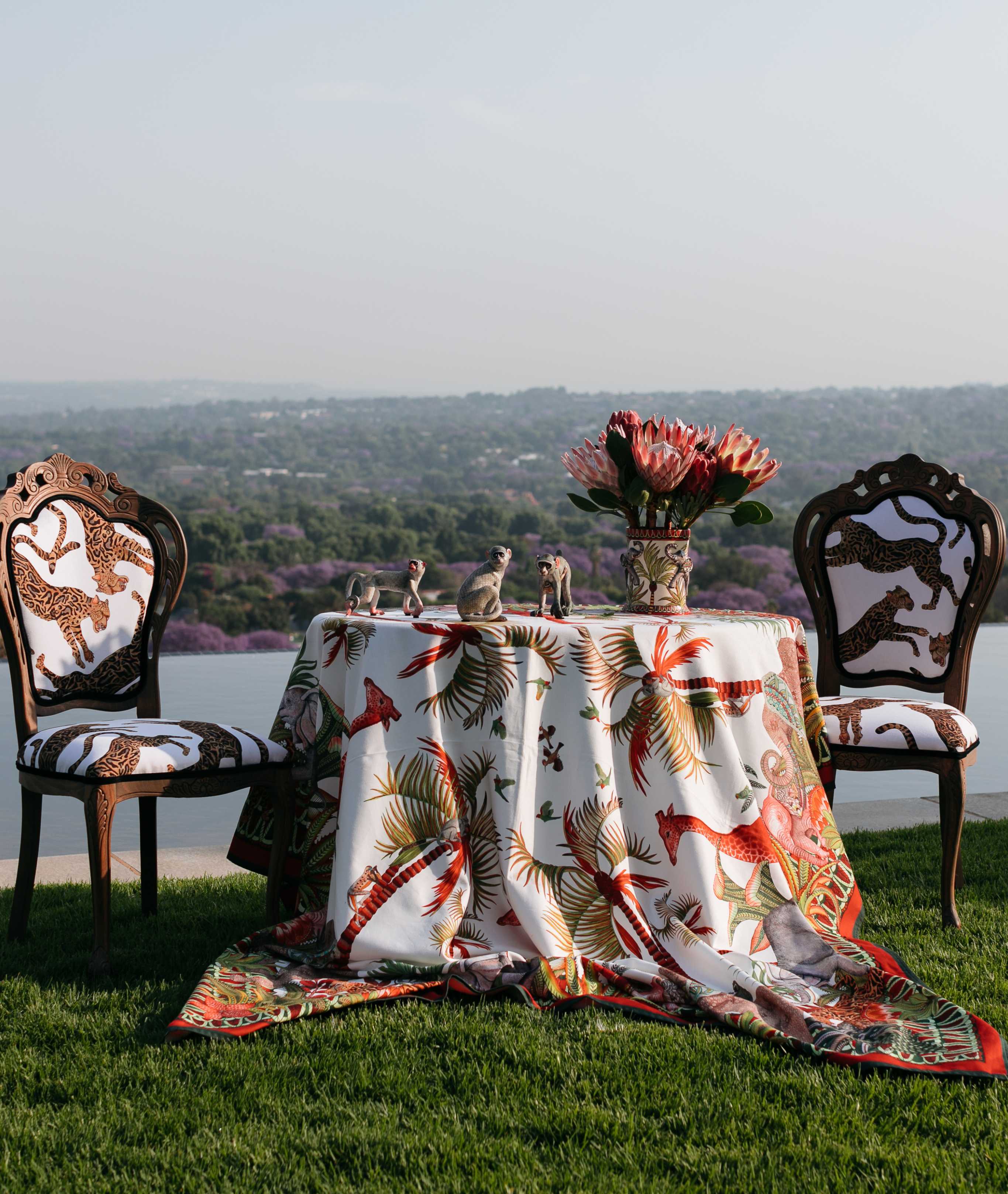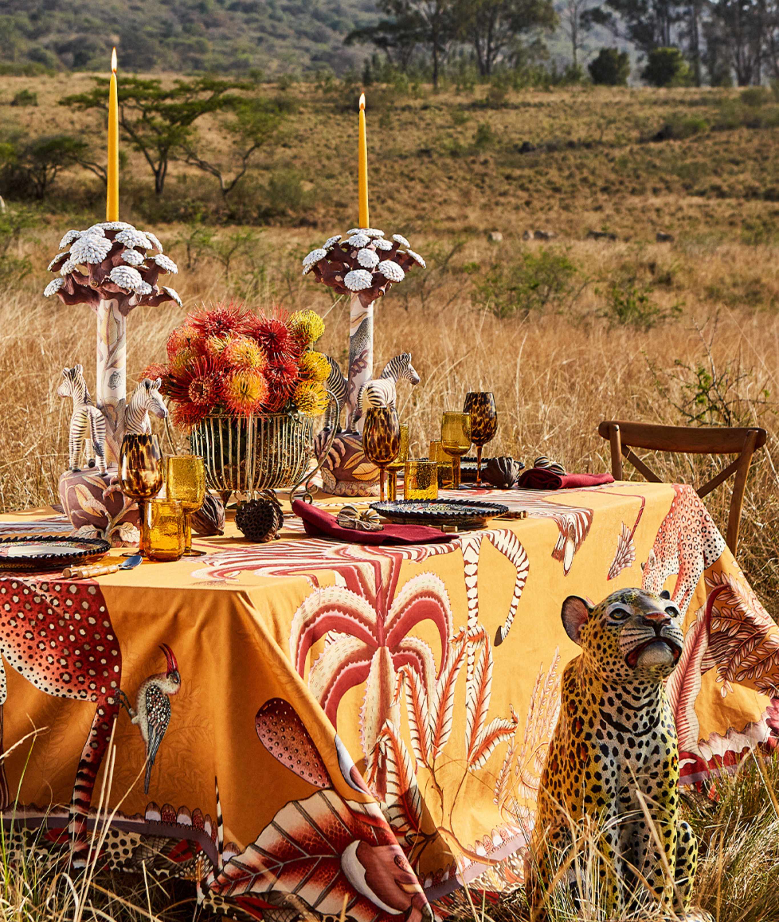 Add a layer of storytelling to your table with Ardmore’s luxury tablecloths, where function meets artistic expression. Crafted from premium cotton and linen, these designer tablecloths feature richly detailed prints that celebrate Africa’s landscapes, animals, and artistic heritage.