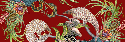 Pangolin Pair Tea Towel in Royal Red