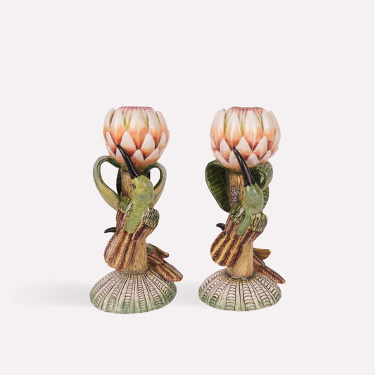 Sunbird and Protea Candle Holders