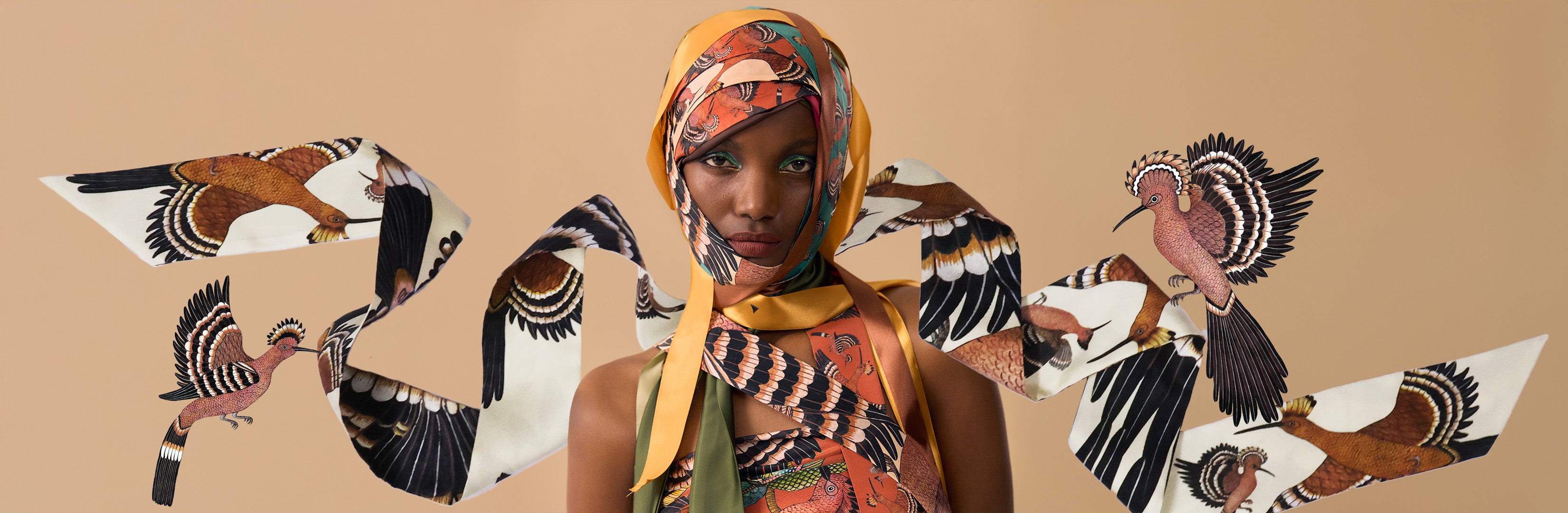 Inspired by her intricate depictions of the Hoopoe, a symbol of healing, wisdom, and spiritual guidance, Punch transforms her extraordinary journey into art. The Hoopoe Hop scarf is a heartfelt tribute to her resilience and remarkable spirit.
