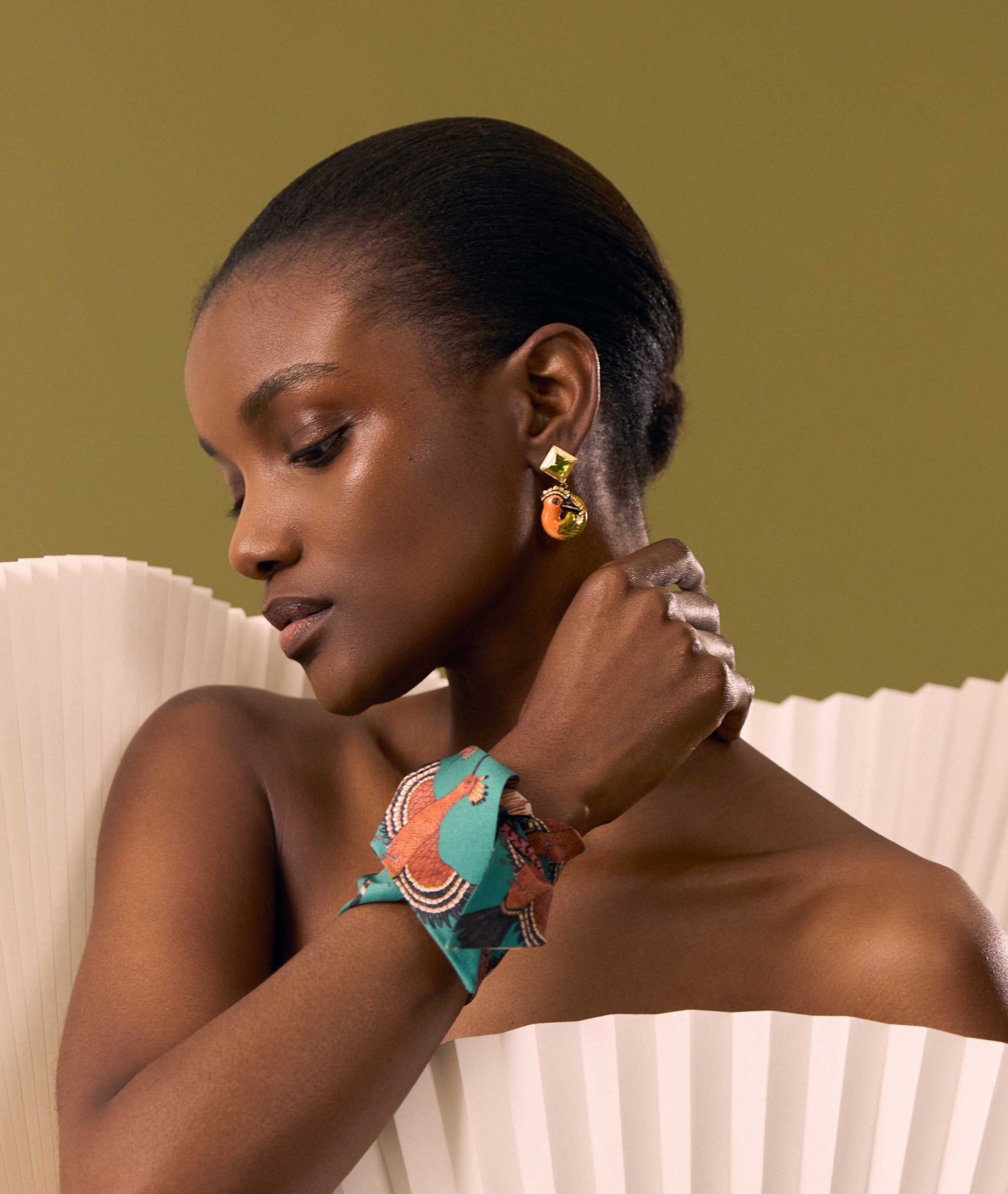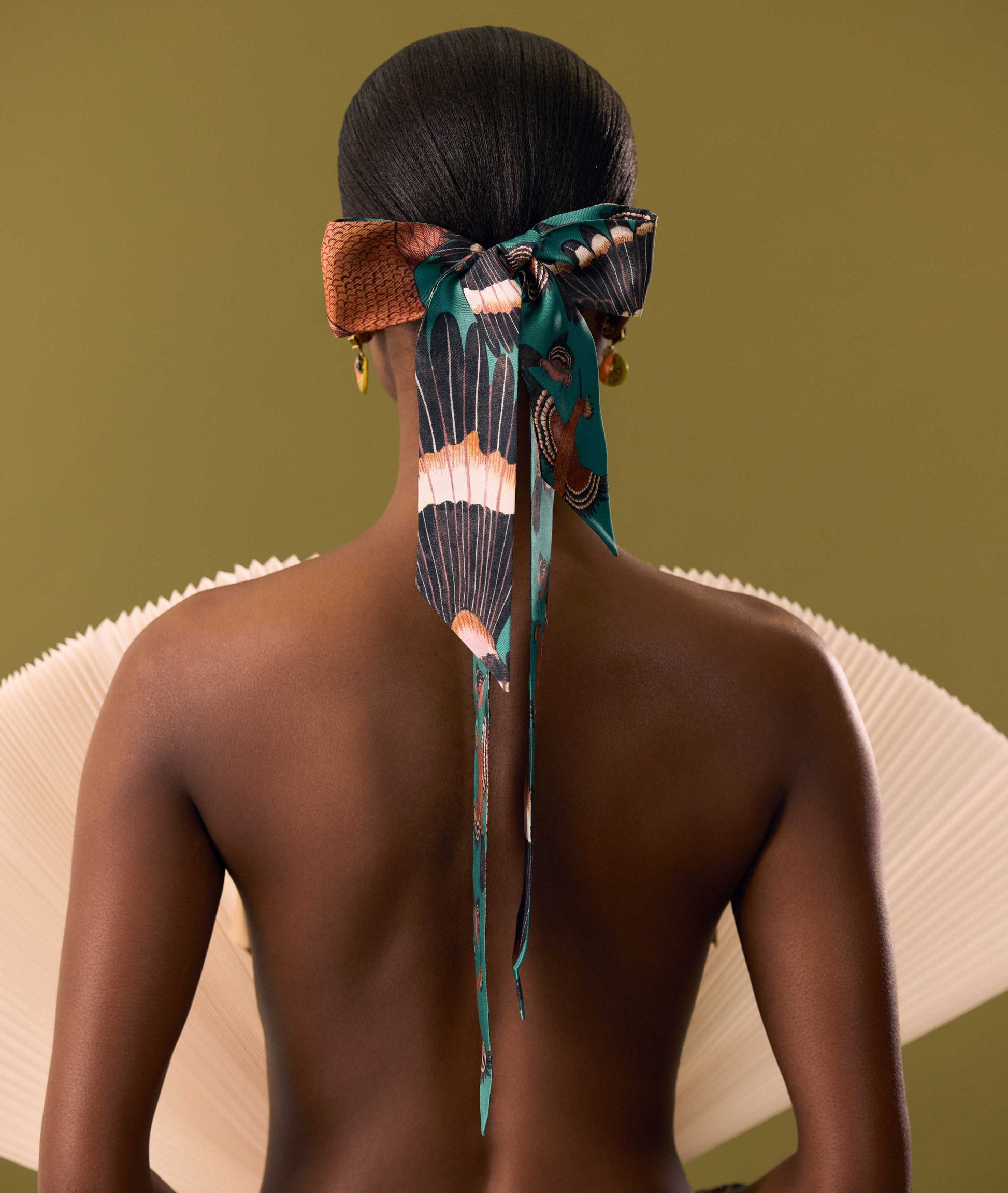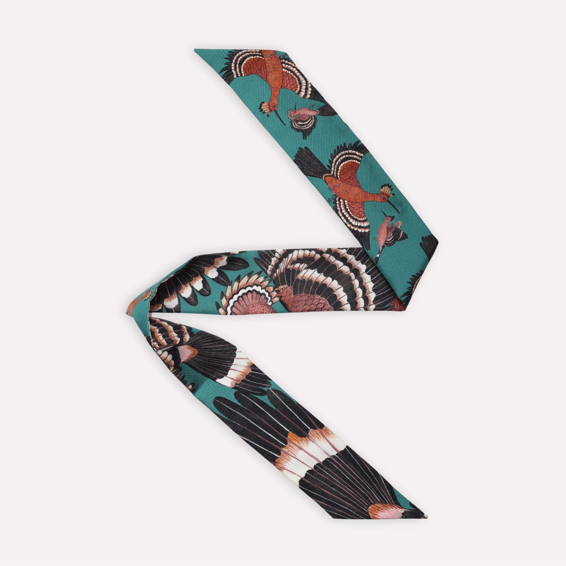 The Silk Twill is a petite yet powerful accessory, offering endless possibilities with a double-sided design. Crowned in splendour, the African Hoopoe spreads its patterned wings — a timeless symbol of strength, guidance, and wisdom. Each feather tells a story, echoing both a rich cultural heritage and the personal journeys we carry within us.