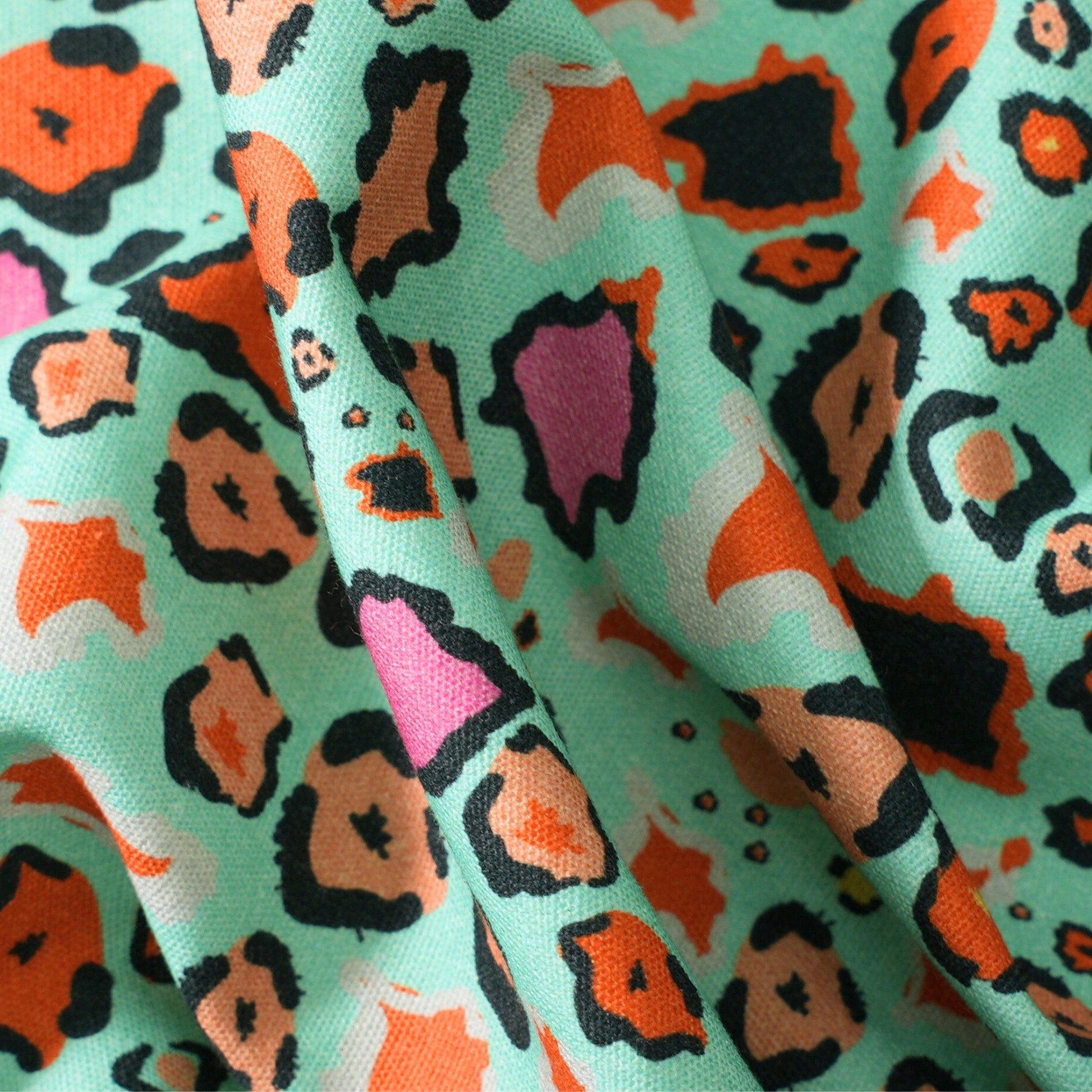 Leopard Lights Kingfisher Linen Fabric