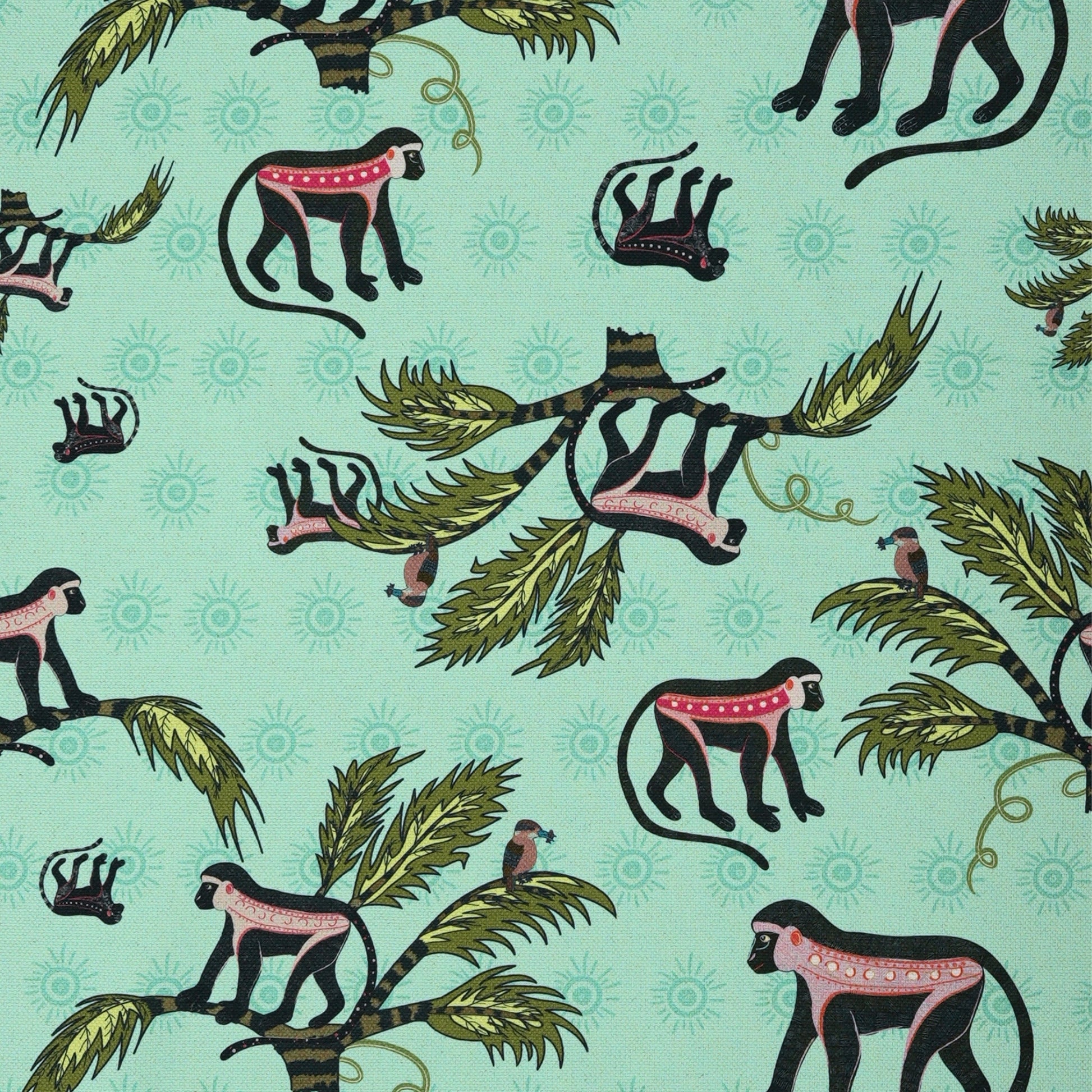 Monkey Palm is a much-loved design from the Q range, featuring a charming cut-out motif of a naïve monkey nestled among palm trees and birds. Evolving from the Wonderboy Wisdom narrative, this playful yet symbolic design returns in 2026, reimagined in rich mango orange and glowing sunset colourways.