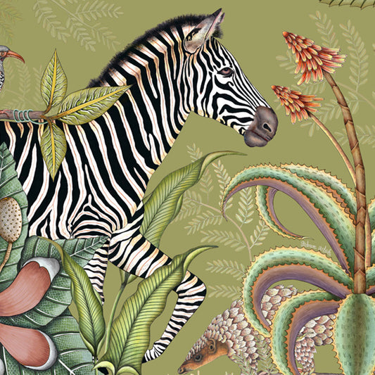 Showcasing a majestic leopard and stately kudu antelope, this tea towel, inspired by the Pangolin Park fabric range, is set amidst lush foliage infused with soothing blue hues. It captures the essence of Africa's wilderness, bringing tranquillity into your kitchen with every use.