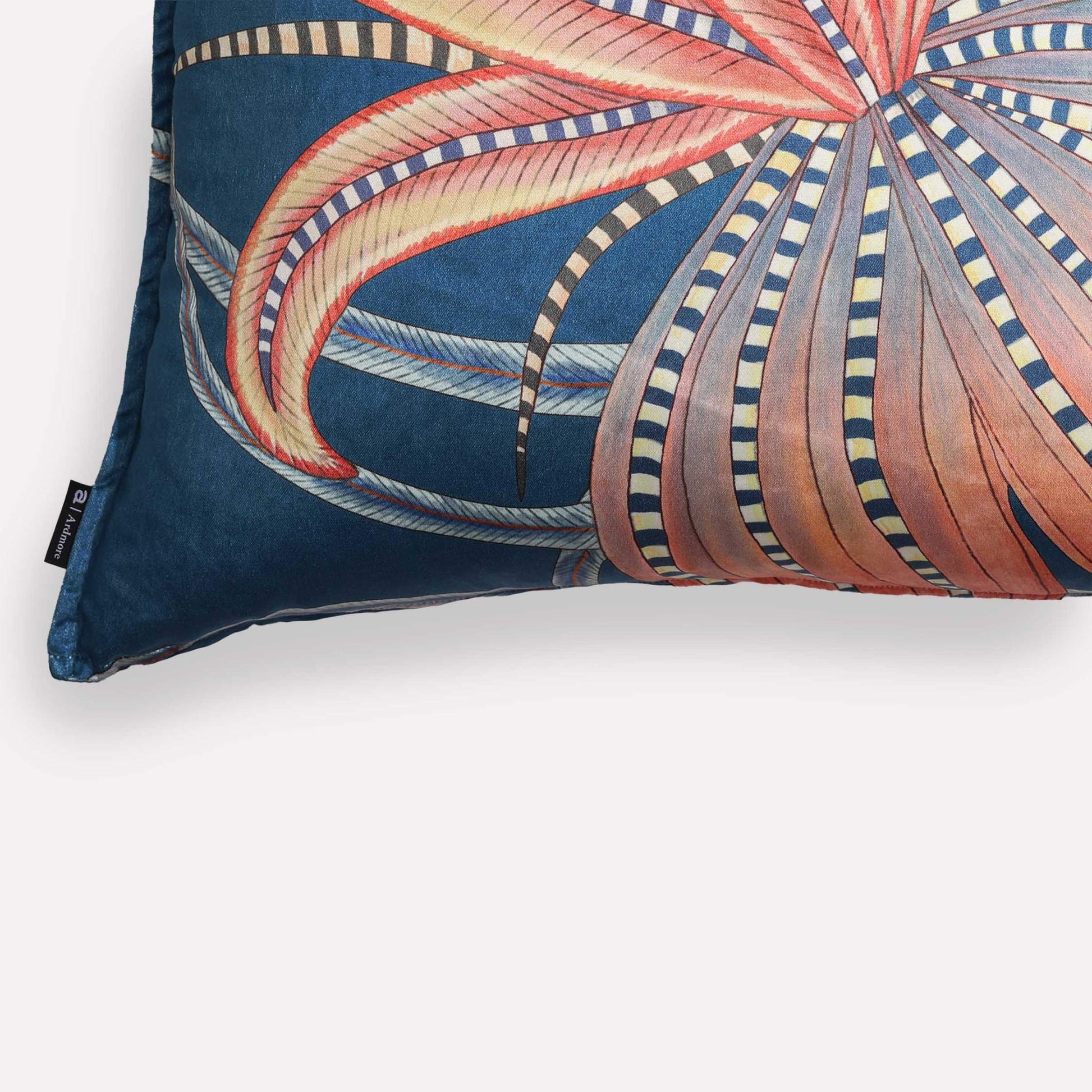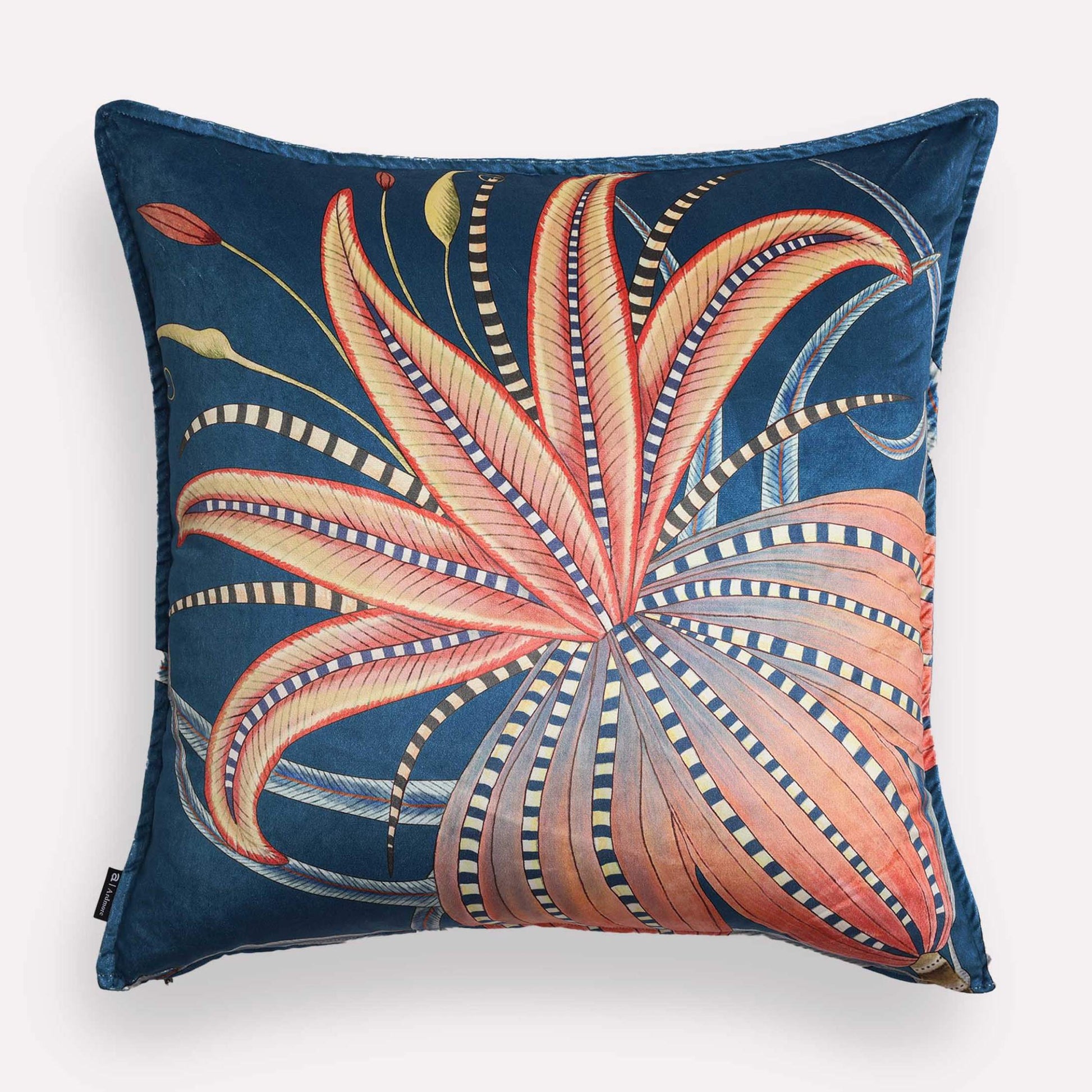 Our Thanda Nests scatter cushion in Midnight showcases the Masked Weaver birds' remarkable nest-building skills, set against a backdrop of lush foliage and intricate textures. The striking blue hue adds depth to this charming scene, which celebrates the beauty of community, love, and natural serenity.