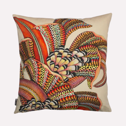 Inspired by the majestic beauty of Africa's wildlife, this captivating design features two enlarged zebras engaged in an eternal dance, symbolising enduring harmony, delicate balance, and unity. Set against a lively tapestry of wild African flora, this artisic portrayal brings the savannah to life. Add a bold statement and African flair to any room with this vibrant cushion, infusing your space with the wild beauty of the content.