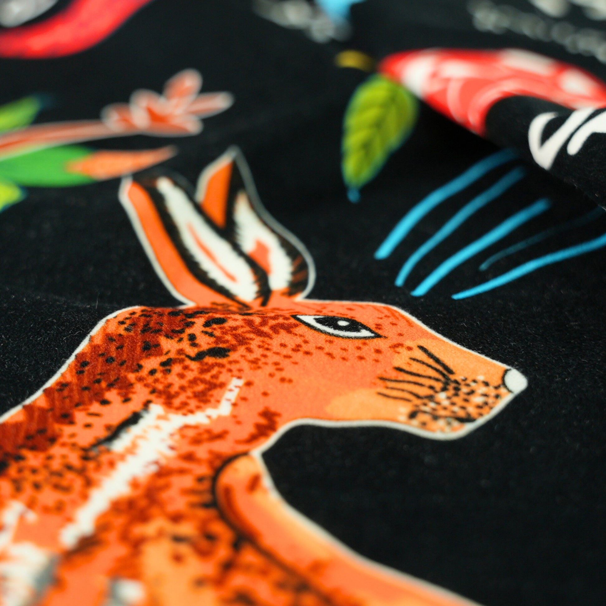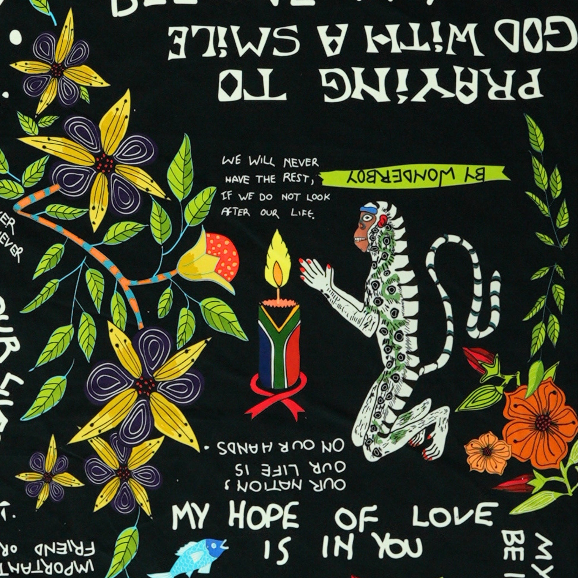 This evolution represents a deeply personal extension of the Wonderboy Wisdom fabric design, where floral motifs, skulls, and soccer- and gym-playing rabbits come together to celebrate a healthy, joyful African lifestyle.