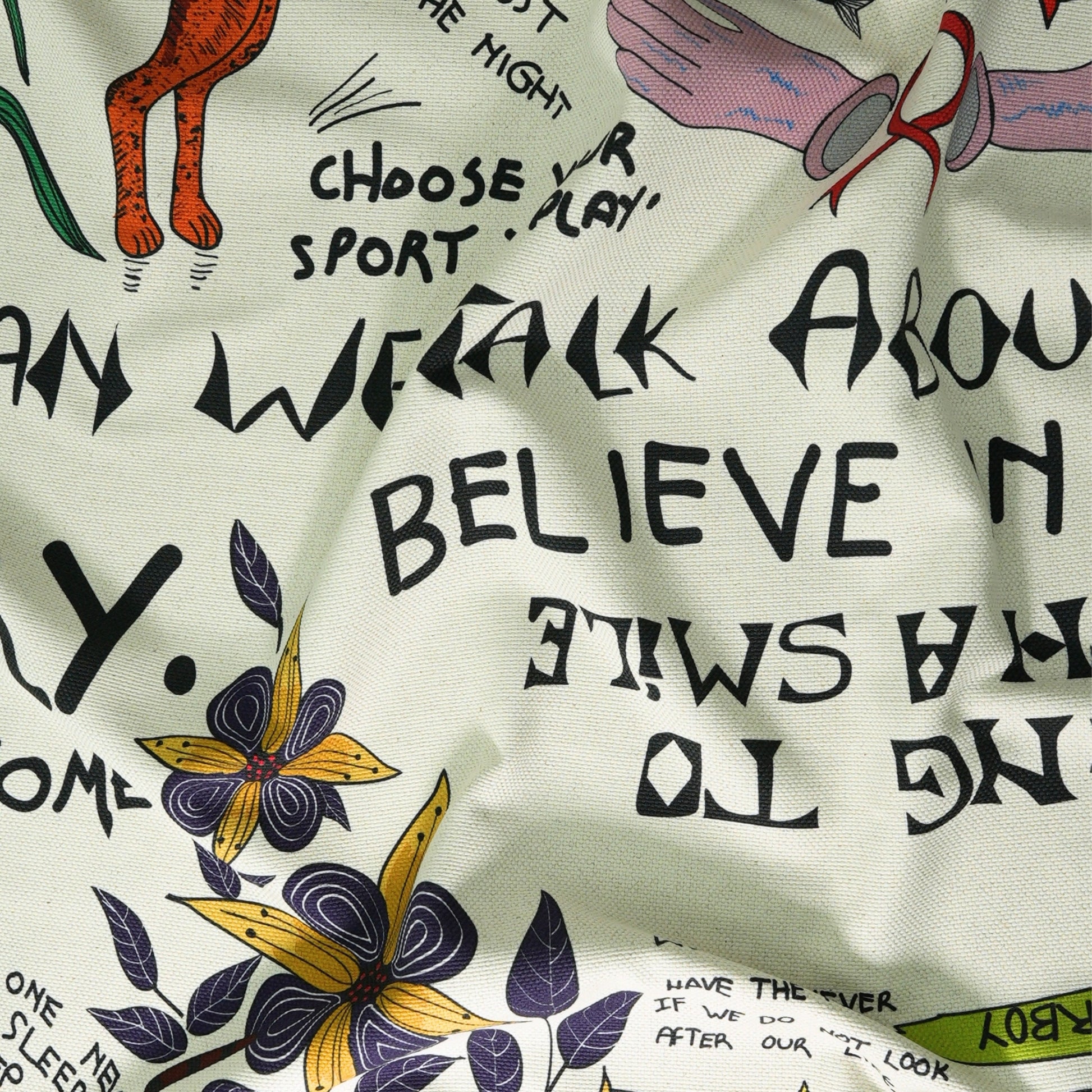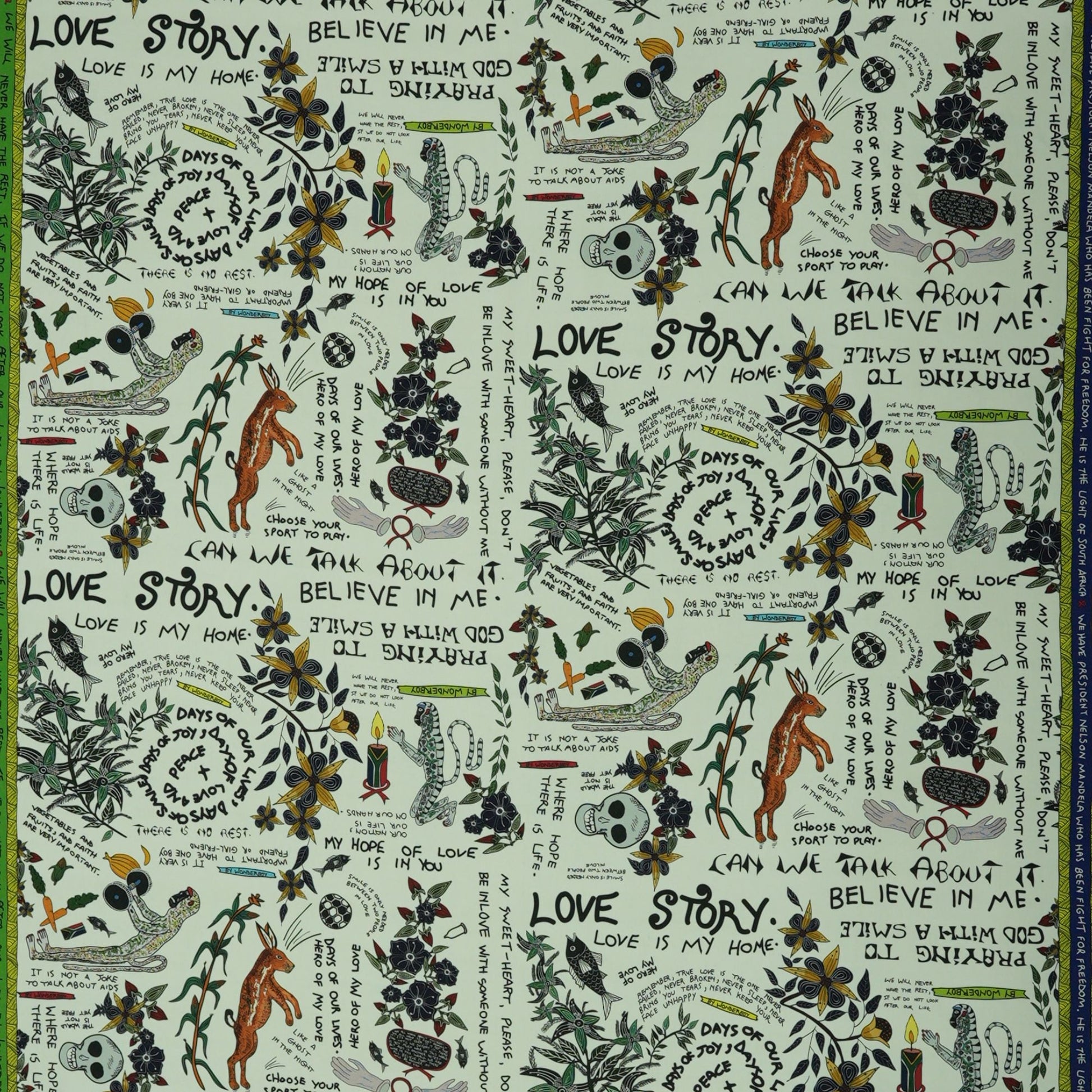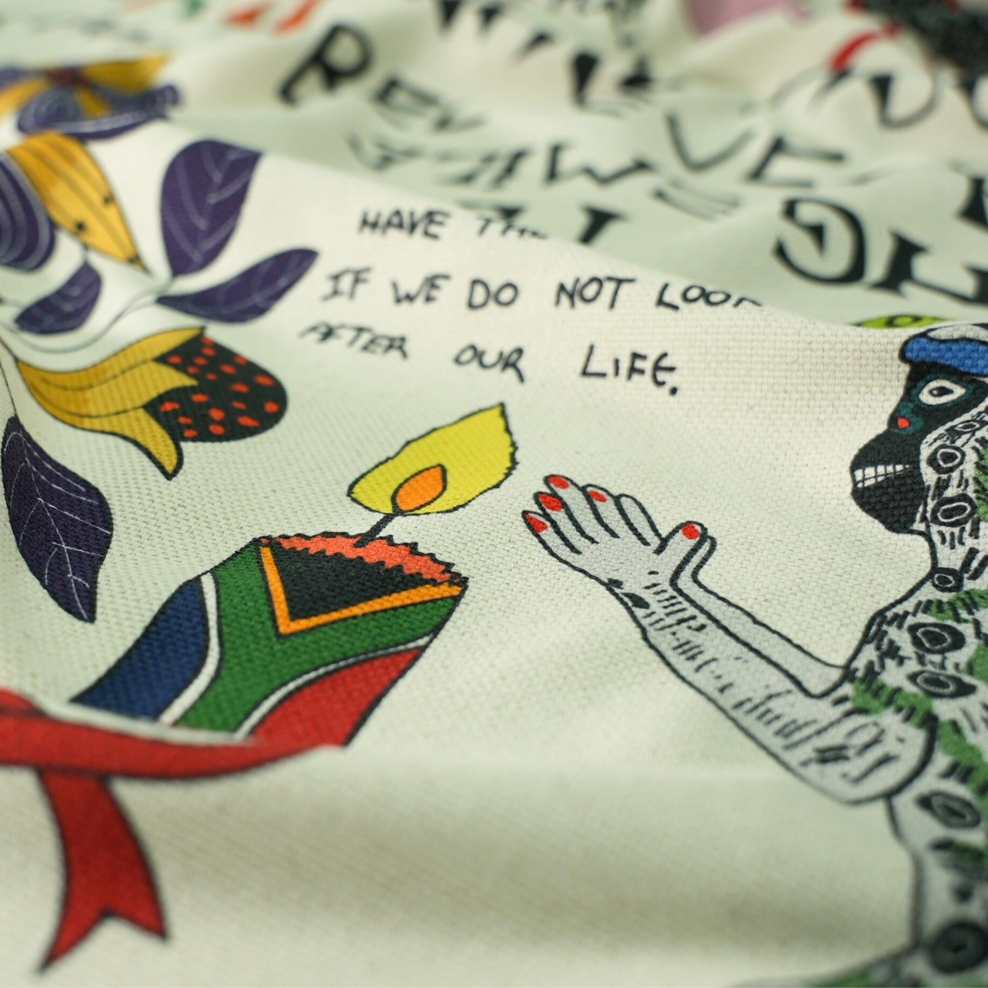 This evolution represents a deeply personal extension of the Wonderboy Wisdom fabric design, where floral motifs, skulls, and soccer- and gym-playing rabbits come together to celebrate a healthy, joyful African lifestyle.